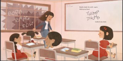 It is a picture book reviewing round up time! My theme is that of cultures. Of course we know the concept of “country and culture” but sometimes a culture can be something you do not immediately think of. Yelena and Papa take care of their nipa hut and it takes care of them in Rachell Abalos’s picture book, Our Nipa Hut: A Story in the Philippines. Due in February 2024, I was lucky enough to have my book dealer send me a finished copy, as this is a book that needs “all the physical” to enjoy. You need to see how the colors of the Philippines pop, the details that Gabriela Larios gives us with their illustrations. How the art is both its own character and a supporting member of the cast. This book opens a world to us that many might not know. We see how a family lives not just together, or in a house, but how that house lives with them. And when a tropical storm comes, we see how they all work together. This look at a culture I feel is underrepresented, is not just an eye opener to something different, but also how we are similar. We might not have to deal with a tropical storm, but we do need to prepare for weather situations. And the extras give the facts whereas the story itself is the more emotional, feeling aspects.