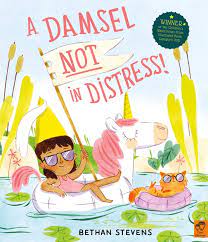 And The Shadow and the Ghost is an exact opposite story of A Damsel Not in Distress! by Bethan Stevens. Due May 2024 this book is Girl Power 101. The narrator does not listen to our princess who is NOT locked in a town, who is NOT cursed by an old hag witch (that’s her GRANDMOTHER!) and who is NOT in distress! (Well a little as the narrator won’t let her read quietly.) And of course, everyone thinks she needs rescuing. But the young knight as he tries to rescue her, falls into the moat (armor too heavy). And the young prince can’t fight the thorny vines (his sword is a practice one, as he’s not ready for a real one yet) and the gnome (everyone else was busy) doesn’t like heights (can’t climb the tower). And then there is the dragon!