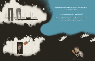 Tyler Charlton (author and illustrator) of this picture book (available, but I read via an online reader copy) made something that is very emotional, strong, soft, and relatable. The young narrator of the story is “just there” (the image shows them building with their blocks) and The Wave comes over him. This is a wave of sadness. Not sure why this is happening, the boy must “ride the wave” to the conclusion. There are “flashbacks” to other times this has happened as well as the current situation.