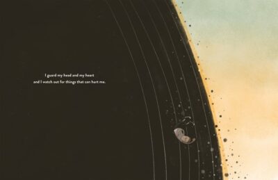 The part that drives it all home are the illustrations. They are mostly dark colors and have a charcoal/pencil effect. They are not overwhelming with details but are full. They are both their own character and support to the text and the story. They are interesting and are an experience. They bring alive the themes of depression, empathy, and hope.
