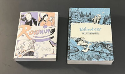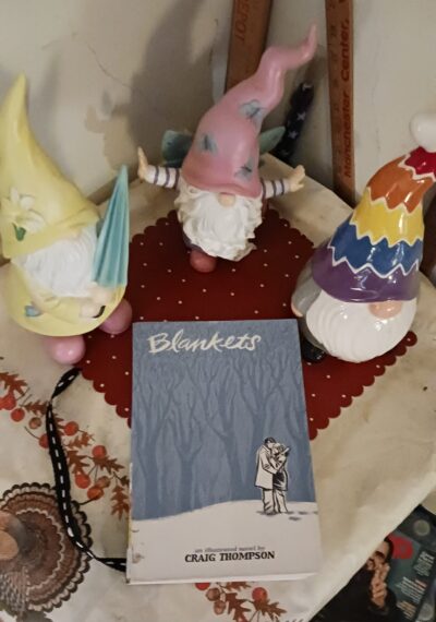 Thompson’s story is loosely based on his own experiences, but I read it as if it was fiction and did not look at it as a memoir/biography. This helped me to place myself in Craig (the character) shoes. Things are fast paced for the reading, even when the action is slowed down. And really, a lot of things are slow. While not “in time” of events, we see them slowly unfold. There are no real BIG REVEALS (a few small ones here and there), only highlights of the characters’ life which are told in flashbacks and current events. Yet, these times might seem to be insignificant at first. The idea of blankets runs throughout. Sometimes it is literal (the blankets that he hogs in the winter, the blanket forts he and his brother make on their bed, the blanket a friend makes for him) and sometimes figuratively (the blankets of snow, the blanket fears/thoughts, the blanket of religion and how it shapes him, his family, and community). There are a few other themes, but due to the title, this theme was the most important to me. Especially with the literal blankets, as they paint an interesting picture of the realism of his life.