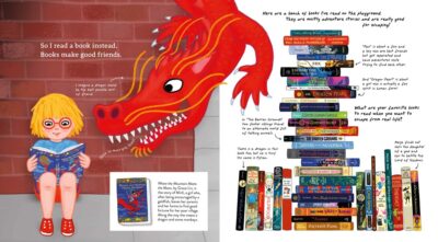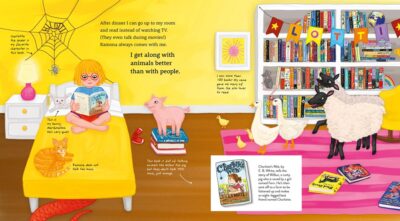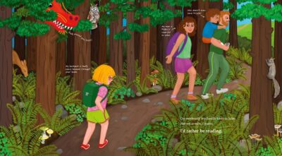 Books Make Good Friends by Jane Mount is one of those books that I am not sure if I liked, but know I do not dislike it. The theme has two parts. The first is the basic story of Lotti, a shy girl who likes to read. She worries about “being weird,” her brother can be annoying (as little brothers can be) and her parents are outdoor-types who like to hike and bike to the farmers market. She would rather be reading. And she has friends, as she has learned that books can be your friend. Yet, she will also realize that books can help you make human friends. They also can help you find a way to compromise about the need to read and the parents wanting to hike by having a book that shows you what is “out there” to find. The second part is where things get, not complicated, but busy and interesting.