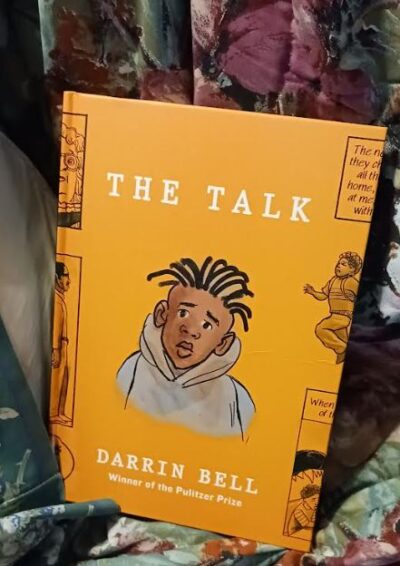 When we start to see how the bigger picture starts to come into play, and how things change, and not change this is where, in the middle of these growing pains, the themes of Talk come through. We see The Talk his mother gives him, The Talk his father doesn’t give him, The Talk his grandfather says, The Talk his Grandmother is part of. And we see the talking, yelling, and the quiet of those who could not talk, act, or breath. The end is where things start to get more thoughtful and editorial. Which is not surprising as Bell has made his living being an editorial artist, among other journalistic pursuits. Like it, love it, hate it, there is something for everyone and hopefully everyone comes away with questions, and maybe a few changes happening to themselves.