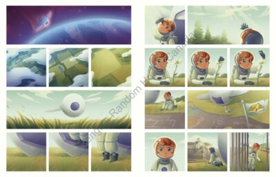 All the points I have for this book, Viewfinder by Christine D. U. Chung and Salwa Majoka are for the illustrations. The wordless story is sometimes a smidgen hard to “get the exact story” (as each person will add their own twist), but overall it is a sad, yet hopefully, even beautiful story of how one Earth-like world (or Earth itself) has drastically changed. Due to the lack of text, I am not sure what the mushroom’s were made of (natural, due to the destruction, or man-made) or why some of the live animals are covered in vines. But it is a lovely story and great for adults as well as the right child reader.