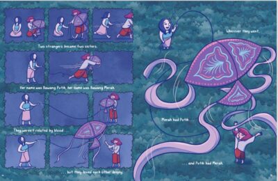 One of the things I noticed was how we can compare these stories (especially the originals) with folklore of other countries, such as the first story I’ve seen similar uses of “hidden gems”, the second story had a bit of Hansel and Gretel to it (without the oven ending) and the third has a giant. There are many layers to text and allow for growth with your child. Probably best used as a one-on-one read, or the reader is individually reading, it might work for a group reading (again, based on the size of the book). The format is in graphic novel styles, that bring the best of the picture book, folktale/mythology book and graphic novel. It is an emotional book, that you will enjoy or not, with little in between.