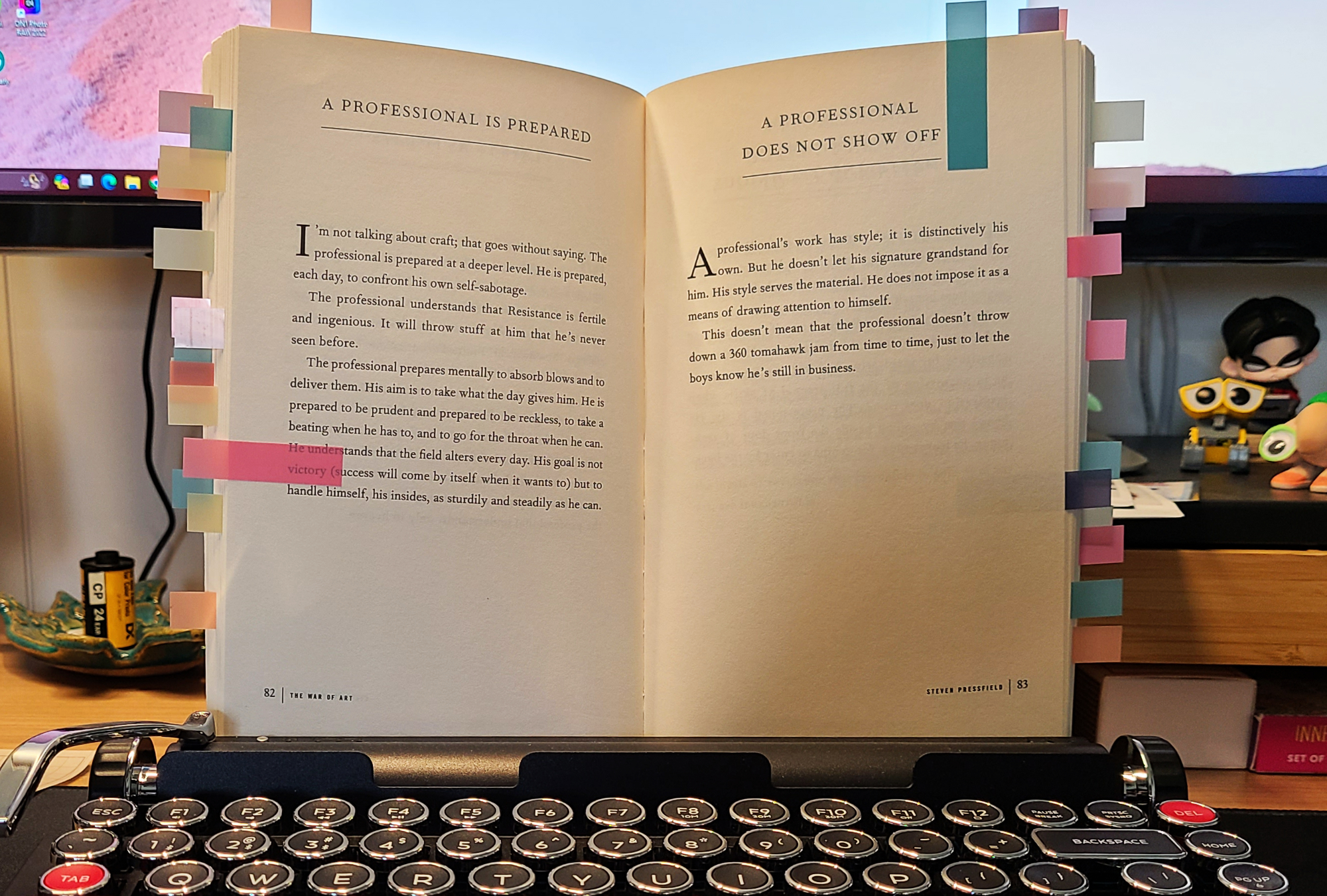 I recommend The War of Art for anyone who finds themselves putting off their book reviews. Watching TV instead of journaling, cultivating your garden, training your dog, or even playing with your kids. Be a Pro.