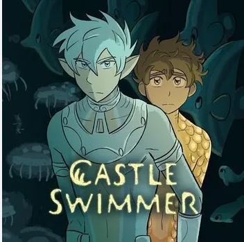 However, Castle Swimmer is much darker. Therefore, I find it odd they remind me of each other. Maybe because of the contrast actually is why I think of them together. First, we are dealing with more traditional merpeople, only instead of mermaids and men, we are dealing with them and a group of shark people. There is the “different people have more rights than others” and the “prophecies of each people” and other familiar story arcs. And then there is the one character we learn is the prophesied one. He is either going to be a great savior or the end of days, depending on who you ask. He will be either sacrificed, honored, or tortured as needed. But we cannot have a star-cross star without a little bit of star-crossed lovers added, not to mention witches, transgender shark-people and more. There are a lot of ins and outs/ups and downs. The GLBTQ are alive and well represented. We have fantasy adventure, and real life love. The art fits the tone and is busy and colorful as needed.