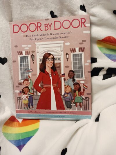 I don’t remember the first time I heard about Door by Door: How Sarah McBride Became America’s First Openly Transgender Senator by Meeg Pincus and Meridth McKean Gimbel (the illustrator), but sometime early 2024 I decided to purchase a copy. I knew I had options with it if I did not want to keep it (donate to a library, give as a gift) and after reading, I decided I didn’t want to keep it all to myself, I wanted to share it. There are a few bumps where the story might have some missing information, or information I felt could have painted McBride more, but it is a good introduction to her.