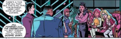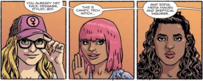 There is fantasy action, violence and things are realistically presented in the busy detailed and color illustrations. There are scenes that are sexual (I mean they are nakey and you almost see the goods) and other mature situations/language. Needless to say, this isn’t for everyone. And despite the cliche factors, which is what I liked about it, this is a “Read Me!” read. I liked knowing what was happening so I could just quietly enjoy the journey. I knew that eventually Jill and Charlie would hook up, I knew that Ash (Jill’s kid sister) would like Charlie, that Jill and the FreeBetties (her BFFs) would leave Sefton’s “cult of opulence.” It helped balance any of the surprises or didn’t expect (and there are just as many of those as familiar).
