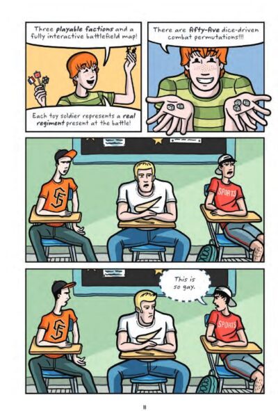 What started as a memoir for Jonah Newman, turned into a fiction rendition of his life. Things are clever, humorous, cozy, familiar, fresh, and relatable. Things move quickly enough in this graphic novel story and four years fly by. The highlights are mostly touched on, but they are very eye-opening highlights. Newman feels they have captured the feelings and emotions of his high school career. You might not always like him, as there are one or two questionable acts, but honestly, they are understandable as he is just a teen trying to just figure out the insanity of life. The realism of the early and mid-1990s is there. The sexism in baseball, the homophobic “jokes” and comments, and even the possible closeted bully.
