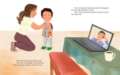 Rostam is a newly immigrated child. His mother and he are starting fresh, while his father is still in Iran, and is to join them as soon as he can. In the meantime, the talk via video chats. Here Rostam shows and tells his father about all the American things he does, how he’s made a best friend and so forth. However, on school picture day, Rostam’s mother wants him to wear his fathers pusteen (a garment that represents not only his Persain culture, but his family’s history as well). But Rostam is afraid his classmates and new friends will make fun of him, as that is not how they dress in America. When he arrives at school and his classmates see it, they are excited, curious