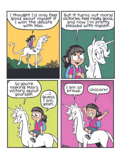 I like the series Phoebe and Her Unicorn by Dana Simpson. Now, I don’t like every book or even every “joke” but I like how Phoebe is a loveable (frankly) dork, that is way relatable, even as an adult. When I found an online reader copy for book 19, Unicorn Crush: Another Phoebe and Her Unicorn Adventure I was intrigued. It had been awhile since I had read one, so figured it was time. Now, there isn’t anything really “new” to talk about, Phoebe is a kid doing kid things such as school, friendship, bullies, parents, riding a talking unicorn. And this time is no different. We deal with the idea of therapy and it being private, some miscommunications, and a school debate against one of Phoebe’s best friends, but the results getting there are the same for each volume: our girl might not be the smartest cookie in the jar, but she tries and in her own way she is a genius. The artwork is simple and fun. It has a way of becoming the center of things without actually taking over. You should probably read these books in order or at least enough to know who some of the people are (especially since there is a reference to a previous story arc) but if you’ve read at least a handful, you should be good. Dana Simpson knows how to turn a tail… um tale.