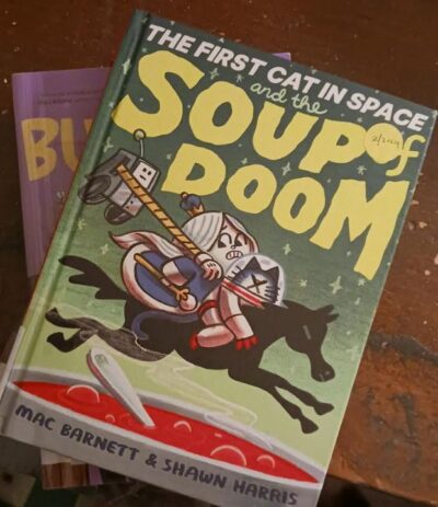 Now if you cannot wait until May 2024 and are looking for a silly story, you can try The First Cat in Space series by Mac Barnett and Shawn Harris. It is nothing like Phoebe, there are no unicorns, or spunky girls, but there is fantasy. Okay, so maybe they are not really the same reader focus, but it is a fun (so far two, planned third, series). The first book deals with Earth sending a cat to outer space where it saves the day and the moon from all sorts of stuff. Book two The First Cat in Space and the Soup of Doom, actually focuses more on the other characters and not the Cat so much. But you have your wacky adventures, the crazy Queen, the not-really-bright (and some more likable than others) court back home, and the Cat does have its moments to shine. In some ways, I like volume two better than one, as the story felt more familiar and had an easier flow. However, book one, with its slightly more unfamiliar story did pack enough of a punch for me to go onto book two. There is a planned third book, but I might not read it. I think my adult self has figured out enough to know who is a recommended reader and who isn’t. Still the ending made a point that the kid me wants to learn more about.