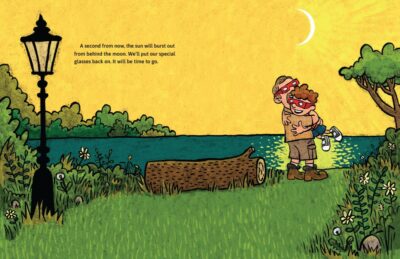 The illustrations are simple, sweet, fun, bright and colorful. They give a bit of support to things, but the main focus is the eclipse and enjoying the special times we have with our loved ones. The story is told from a “already happened” point of view by the child, so we realize that “a year later” they still try and remember things, but of course, it is harder to get the details right. Yet, the most important thing was the time shared and that is very easy to remember.