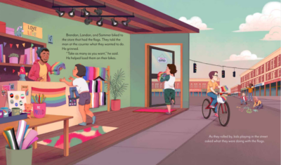 I like a good LGBTQ+ story, but what about allies? Why aren’t they included in more younger books? With Rainbow Allies: The True Story of Kids Who Stood Against Hate, I found my allies. The real couple and some of the community members involved spoke with Nancy Churnin about a Massachusetts town that was like many little towns, but claimed to be accepting of everyone. However, one day a woman and her wife came home to find their rainbow flag stolen, house egged and dogs traumatized. Their young friend got his friends together, brainstormed and with the help of the community got their title of Welcoming Community back. It is a lovely story of friendship and standing up to hate. Extras are fantastic and allow adults and children to work together on ways to help their community. The illustrations of Izzy Evans are fun, cozy, colorful and expressive but are not popping off the page in your face. Everything works together, like a community should.