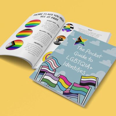 It is far from a complete guide of identities, but there were identities and flags I hadn’t heard of before, some refreshed my memory and some were classics. They mentioned three different types of rainbow flags (progressive, inclusive, and old school rainbow) and even had a few spots for ones you want to add. It is a little pamphlet or zine (they sell those, too) but it has a lot of neat stuff included. I think it would be great for introduction purposes for family and friends, for a classroom, or even a