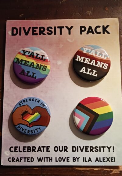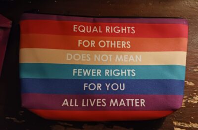 Queer Haven Books is (according to their website) South Carolina’s only independent, queer bookstore. Shop Queer Haven Books for books, sit down with a cup of coffee, read a queer book, play a queer game, and build a queer community. I found them in an email newsletter saying they had just opened. I went to their website, and found several items I knew I couldn’t locate elsewhere, took a shot and ordered a makeup/pencil bag, a few button pins, a bookmark and The Pocket Guide To LGBTQIA+ Identities.
