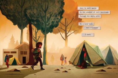 | This is shown in illustrations by Abe Matias. As I read this currently available book via an online reader copy, I did not notice the style Matias used, but it is clever, and terribly simple, but far from simplistic. The basics are there and the colors run towards more earthy tones, keeping it somber. Yet, it is not unhopeful. This probably could be attributed towards the fact that the faces are usually neutral or positive. Light and colors that are used does not “dim” but can actually freshen a scene that is less than ideal. The text and art do not “bring things down” but just show “as it is” in this situation.