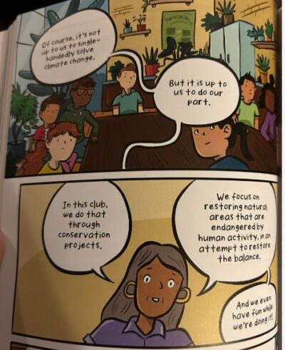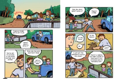 The graphic novel Wildfire by Breena Bard has a heavy push of environmentalism and that which causes them, and how to try and fix them. Which is, of course a fantastic subject, but at times it felt a smidgen pushy. However, overall it is well done and introduces the subject well. I had a few spots where I had wished something else had happened or was handled differently, but I enjoyed things. A modern tone with bubbly, colorful, minimal detailed illustrations to help counter the seriousness of the wildfires, the displacement of the family and animals, and the grief process the main character is going through.