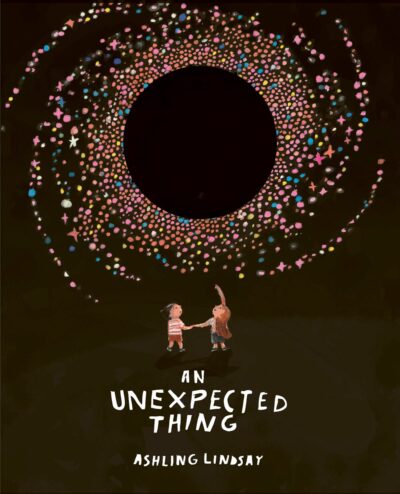 I will start my review of An Unexpected Thing with I really like the illustrations. Usually, that abstractness does not work for me, or at least, it can feel off. However, this time it was fun, clever, and colorful. A good time was had by all. Or at least me, as our main character is not having a good time in Ashling Lindsay’s book.