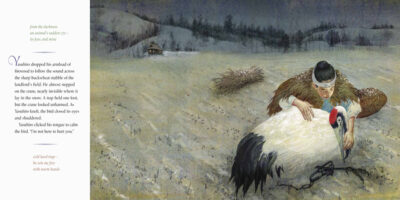 The story is dense and deep. We find Manley adapted the Crane Girl/Wife story to fit their needed goals. Still, it feels as if this was a true interpretation of the legend. The afterwards gives more details about this and much more. Everything is worth taking your time for.