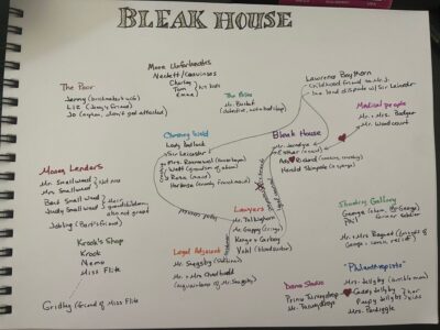 I couldn’t get enough of Bleak House. Mapping the characters (and I know I’ve missed some connections) has helped me revisit these personalities and relationships and was almost as much fun as reading the novel. I highly recommend reading Bleak House, but if you’d rather take a shortcut, see below (definitely spoilers)!