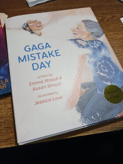 Gaga Mistake Day by Emma Straub, Susan Straub and Jessica Love was a book I kept circling around. Mostly because I wasn’t a huge fan of the cover. Of course I should have known not to judge a book by its cover. But sometimes you can (I knew the Spiderpig book I read was going to be hammy). Due to the title and the image (a cloudy backdrop around a grandchild and grandmother) I assumed it was going to be about memory loss, dementia or something similar. It is nothing like that. It is bubbly, happy and silly. Gaga’s mistakes are deliberate (or we assume, though the child narrator might take things a little more at face value). Gaga brings her slippers, but puts them on her ears. A lollipop and a handful of carrots can be lunch. And dressing up is always more fun when Gaga is around. This bond between the different generations is sweet and clever. The illustrations are soft, busy, not overwhelming. Things are classically and modernly portrayed. I like how Gaga is a mix of “old timey grandmother looking” and a “young hip acting grandmother.” I expect when singer Lady Gaga herself is an older woman, this is how she and her grandchildren will act.