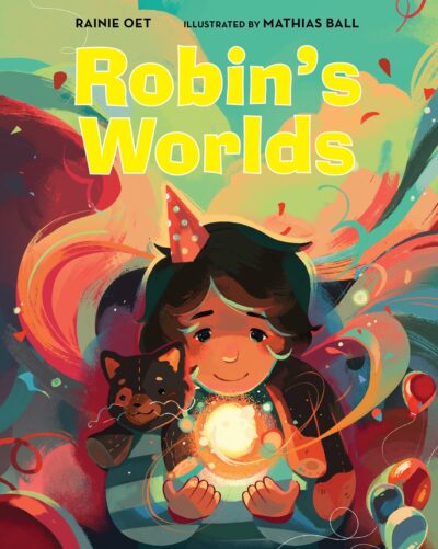 Rainie Oet’s Robin’s Worlds had a slight “translation feel” to my “reading ear.” It did not feel as if English was the first language of Oet. However, I don’t seem to find that there was a translation. This gives the story an old flow to it. The story itself has a simplicity but also a sophistication that was unexpected, but not necessarily unpleasant. This is added to by the illustrations of Mathias Ball. Ball adds to the otherworldly tone with the colorful and busy details of both the real and imaginary worlds we are exploring.