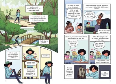 The author is that of the graphic novel series School for Extraterrestrial Girls. I was not aware of this, because of two main things: the illustrations of Bre Indigo (and Melissa Capriglione is the colorist) are nothing like Whitley’s other graphic novel series illustrations and the story has very few things in common with School. Yet, there are a few themes repeating.