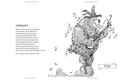 Since I read this via an online reader, I am not sure if the illustrations will be in full (or partly) color, but they are clever and fit the poems perfectly. They are simple, and more highlighting the theme/situation than overly detailed, but they are clever. Not just for the poetry lover, in fact a not-so-fan can enjoy it too. The entire concept does sound boring, as one of our friends at the start of the book says. However, there are the aliens and monsters, lots of trash and friendships and all sorts of adventures. The poems about compassion, kindness, anger, jealousy, and much much more are just cute and clever. Not all of them are “likable” by all people, but all people will find something to like. There are some gross things, (teachers with hairy toes anyone?), some goofy (hiding in a dog house), and even cake! Granted, I did not read every single poem, but most did tickle my fancy.