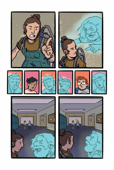 And one day, they are tricked by the local bullies that there is a treasure in the school. A treasure that had been buried with the owner, a mean man who created their school to try and cover up his misdeeds. The thing is, there really is a treasure and it is guarded by some interesting ghosts! A former principal, a groovy disco dancing math teacher, a librarian and her pooch, and even a ghost-girl who takes a liking to Herschel. Plu, the “they are bananas” cast continues.