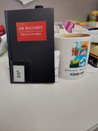 The late Princeton University philosopher Harry G. Frankfurt might just be best known, when he’s known, for a little book titled On Bullshit. When I say little, I mean the library copy I currently have on my desk measures roughly 4×6 inches, and is a bit under 1 cm thick. 20oz mug included for size reference.