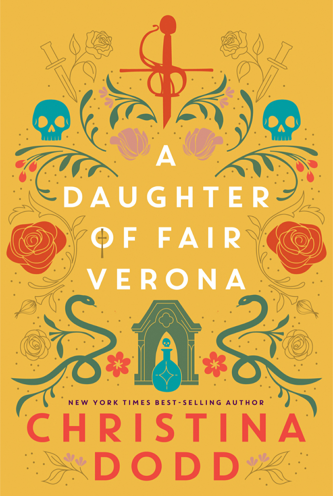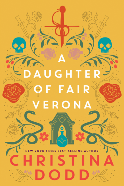 What if Romeo and Juliet didn’t die tragically in that tomb? Instead, what if they remained madly in love and grew comfortably middle-aged together and had a houseful of kids, the oldest of whom is a daughter named Rosalind who goes by Rosie? (Yes, Romeo insisted on naming their first daughter after the girl that he was infatuated with just prior to Juliet.) Rosie, who has just been betrothed for a fifth time to a villain after said villain pulled some power plays and her father was unable to avoid the match. Rosie, who managed to find alternative matches for her first four betrotheds because she only wanted to marry for love, but had yet to experience that magic that her parents still have all these years later. Christina Dodd addresses these questions and more in her fun and engaging new novel, A Daughter of Fair Verona.