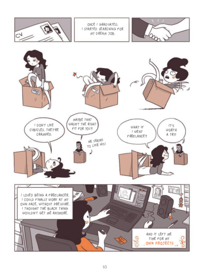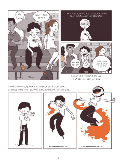 Though available I read via an online reader’s copy, which had some text in French, but I’m assuming it’s just a reader copy oops and won’t be in the final. And I want to say I’m given this a 4 (I would like to give it a 4.5 but we don’t allow it) because of the one small issue I have with the book. It ended. How can this end? I don’t want it to end! I want to travel with Lou and stay friends with her forever! And a quick note on the illustrations: the use of orange is AMAZING. It is a great contrast to the black of the anxiety/health issues and really captures the mood and feelings of the author. When they say Written, Drawn and Experienced by Lou Lubie you know it’s true after finishing it. It is an experience they and you take and this is accented by this art.