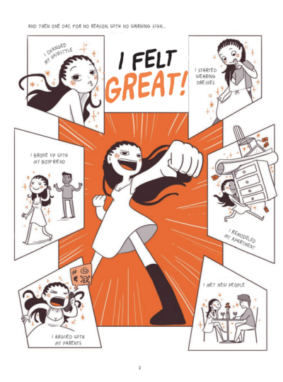 While I have been lucky and not experienced a lot of medical gaslighting, (but of course I have experienced it. I am female and fat after all), I know it happens all too often. Especially with women and women like Lou Lubie who are “too young and pretty to be” depressed/bipolar/have any real problems/issues. After all, what does she have to worry about? Why can’t she just be quiet and enjoy her good job, her boyfriend, her friends, her apartment? IT doesn’t matter that Dr. D says she doesn’t have X Y Z (even though Dr. A said she has X, and Dr. B says Y&Z and Dr. C said…). I think there probably isn’t a person who hasn’t had some experience with it. Especially when it comes to mental health issues. And A Fox in My Brain tries to help the reader understand their own journey and perhaps take away a few things from Lubie’s journey. Not only does she give you her own experiences, but puts into plain French (translated to English) the science. I think I picked up more things here than I had gotten in other books I liked that had given me something.