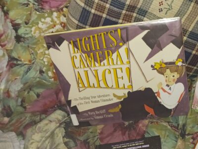 Lights! Camera! Alice!: The Thrilling True Adventures of the First Woman Filmmaker by Mara Rockliff and Simona Ciraolo hit on the highlights of Guy’s life. The set up is like a classic movie with their title cards (the afterwards will let you know that they are titles of Guy’s films). The focus, while on Guy covers a lot of areas that the adult (graphic novel) biography I read didn’t seem to. Positive and upbeat. The illustrations, while fun and clever, might have been “too cute” for me, but are perfect for the book.