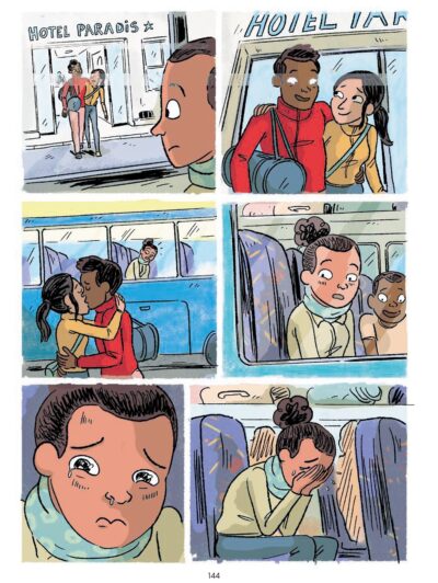 This book is a graphic novel about a young woman of mixed race and religion. She lives in France and is the daughter of a Polish Jewish mother and father a Muslim of Gambian background (or an African father and Eastern European Jewish mother). She is always trying to fit in, as she is neither really black enough or white enough, but she is “exotic enough” to be fetishized. She is black enough to be failed every paper by her racist professor. She is woman enough to be sexy but her father wants her only to be smart, study, get a good job and have the opportunities he and her mother didn’t have. She lives with her parents, younger brother, and maternal grandfather (who likes his vodka, misses his late wife, has some interesting comments and feelings).