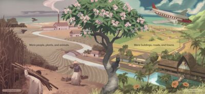 And like many books that fall into this category, it was worth the time. Tony Piedra and Mackenzie Joy made an amazing story about how historical changes led to the extinction of a bird of the island as recently as the late 1980s. We start millions of years ago, when the island of Kaua’i is just bubbling up. We then go to each event (in a quick look) to when the birds finally arrived, how the first people came, how the Polynesian people brought non-native species, how they used the land, how then the first white settlers came, and so on, until the last bird song was ever heard.