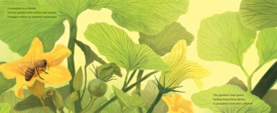 When you read a book and the title (The Pumpkin Seed’s Secret: A Life Cycle Poem) tells you the story, one might wonder if it will be good. I mean, we know the plot right? Well, these are poems, not a “real story” and yet, you get a book that is set up almost as a story. And when it says “life cycle” how could it be good? I can’t imagine a pumpkin is very exciting. Yet, these sweet poems (and a plethora of extras and even a recipe) give us the joys of the Pumpkin in ways that are clever and keep you reading along. From a seed to being planted to the final result and debuting as a pumpkin, we find many things and wonders on the pages.