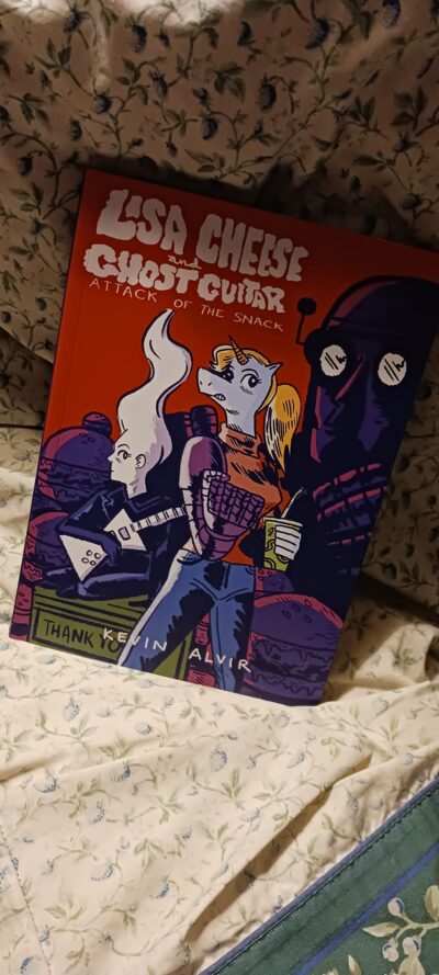 Lisa Cheese and Ghost Guitar (Book 1): Attack of the Snack by Kevin Alvir is a lot of things. I was about half way through when I realized it probably was mostly a commentary on capitalism, mom & pop stores vs. the big man and the greed of “bigger and better” and addiction to that (via fast food joints).
