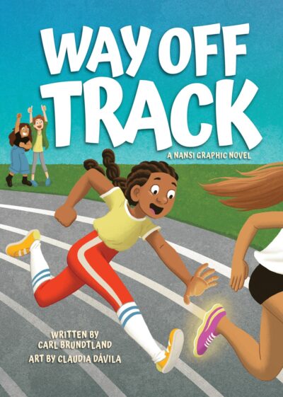 Nansi Graphic Novel Volume 1 Way Off Track by Carl Brundtland and Claudia Davila is a quick and cute story about running your own race and not worrying about what others have or if they are better. You just have to do your best and be better than you were. Also, we have the theme of no matter how cool they sound, shoes do not make the girl (well, I might argue that point, but certainly the sneakers in question do not make the girl in this case).