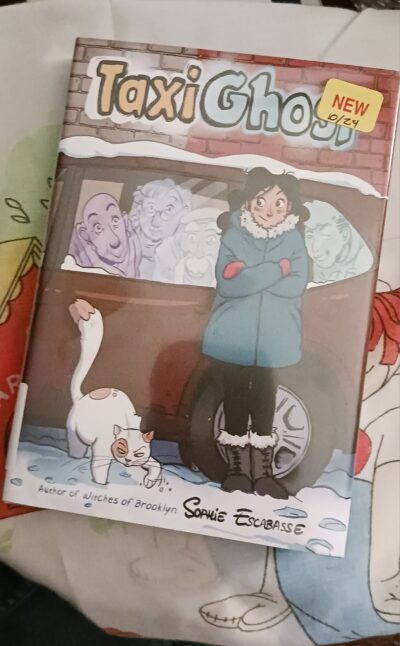 I had been interested in Taxi Ghost by Sophie Escabasse for a while. I lost my online reader copy, so I went to the library instead. It still looked interesting, but also looking more closely at the cover I thought it also looked like it was going to be an odd book. The ghosts are in the car, the main character out front, standing there like she’s the best driver in the world, and ready for adventures.