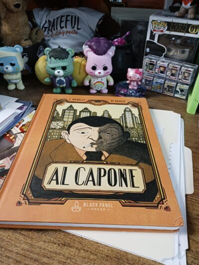 Al Capone by Swann Meralli and illustrated by Pierre-François Radice is told from Capone’s POV but due to who he was, and the images given, we know he is not a reliable narrator. However, he does tell you “the facts” but his version is colored by his personality and the fact he is telling his mother his side of things. It is an interesting graphic novel that highlights important events that will start with him as a child (which little to nothing is known), continue with his rise in New York crime, and finally to Chicago and 11-years of glory days.