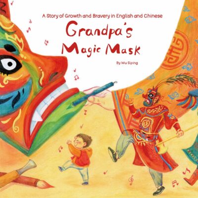 First I would like to tell you about Grandpa’s Magic Mask: A Story of Growth and Bravery in English and Chinese by Siping Wu. The grandfather and grandchild of the story have a lovely relationship with each other. They work on the masks the grandfather makes for special performances, and he not only tells about making the masks, but the stories behind them. Still, when the grandchild stays over, the masks can be scary in the dark. It is not until they encounter a special event that makes them understand the importance of them, and the richness of their culture. The illustrations are delightfully easy. They are not lacking, nor are they too crowded. Good colors to these details allow things to pop and to compliment the story.