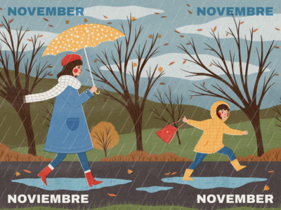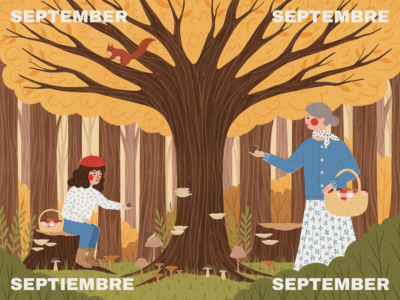 Ioana Stoain puts a month’s name in four languages: English, French, Spanish and German. I knew the English word (top left corner of the page); assumed the bottom right of the page was German (who knew how many months were the same in both languages?), but due to the fact that French and Spanish look similar to me, it took a bit for me to realize Spanish was lower left and French upper right. A quick key at the start of the book would have been fabulous.