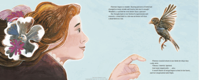 Yes, copies. You will want one for your personal library, your ornithological friends, your child/grandchild’s school library and your local town library. You will want to gift it to nieces and nephews. This is a fun and interesting book about a woman ruffling feathers in the scientific world. Florence Merriam Bailey was always in love with nature, but her true love was birds. In different forms, she would study them, learn about them, even teach about them. And during one fateful dinner she realized she would have to advocate for them. The other scientists might be more well known, but they dealt with the birds in parts, when they were dead, and not in the way Bailey would: alive and well. She would get her college classmates interested in birds, and many others. She would write what will be considered the first guide on the subject for American birds and help push conservation of the animals in her own way.