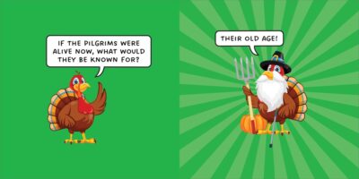 The Halloween book has more jokes per page, but that does not mean that Thanksgiving is lacking. Both have their fair share of helping you get the giggles. You can also get your laughs in with How to Make a Ninja Laugh, How to Make an Astronaut Laugh, How to Make a Penguin Laugh, and How to Make a Unicorn Laugh that are currently available, but I have not read. What I have read are How to Make a Robot Laugh and How to Make a Shark Laugh and I’m looking forward to finding a copy of Ho-Ho-Ho-Larious Christmas Jokes and How to Make a Lion Laugh.