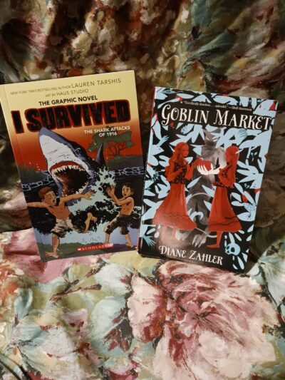 So, one of the ways I was trying to read a book a day was to do simple books. Not books that were simplistic (See Jane. See Dick. See Dick and Jane), but easier reads, fun reads, books that are enjoyable even if you do not necessarily learn something. But with the I Survived novel and graphic novel series, you get both, fun and educational. One of my Holiday Exchange books was I Survived the Shark Attacks of 1916: A Graphix Book by Lauren Tarshis (original author), adapted by Georgia Ball, and illustrated by Haus Studio. What my giver didn’t know was, I used to enjoy books about sharks. My first book from a Scholastic book order (I think. We used to get these little fliers from a company and I forget which one), was a non fiction book about sharks. So, to read something about shark attacks was up my alley.