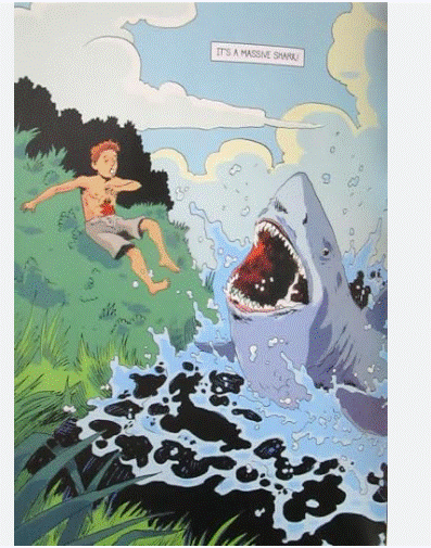 This story is based on the actual events and one boy who was attacked, but lived. The extras at the end show the historic information about the real people who lived and died during and from the attacks. These events would actually start people realizing sharks will attack people, and make them want to learn more. There are also facts on sharks, facts on real attacks, and much more. Part of that more are the illustrations. The cover gives you a lot of what to expect, but they are a bit more detailed, but not overly so. Things are quick and bold, not bogging the reader down. You have a place to put your characters, giving you all the information you need.