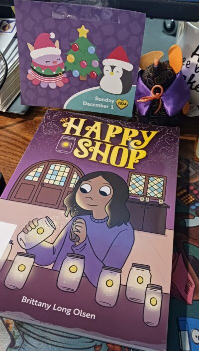 The Happy Shop by Brittany Long Olsen was a book I had on my TBR for awhile now. I didn’t know what to expect, except it was a graphic novel and would have some type of magic in it. And in the short run, that is what it is all about: A girl finds a magical shop, magical things happen, she makes magical friends. Yet, there is a bit more.
